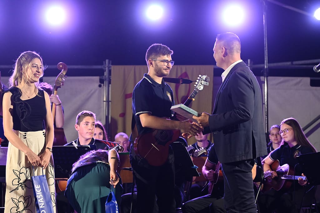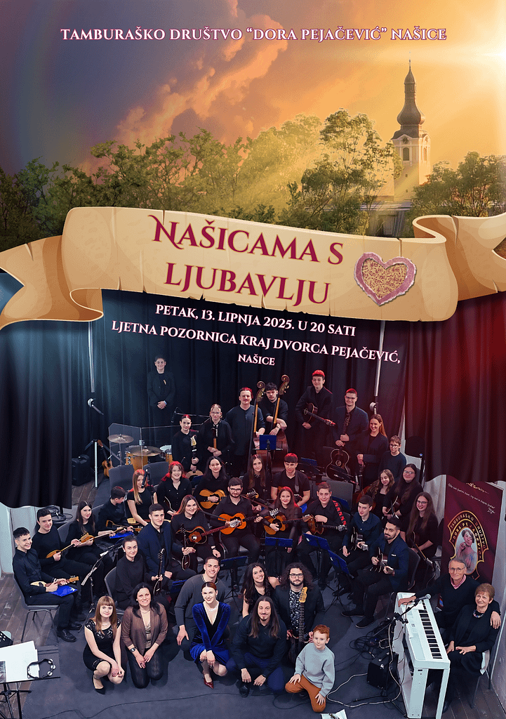 Našice, 13. lipnja 2025. – Jučer je, povodom proslave Dana grada Našica, Tamburaško društvo „Dora Pejačević“ priredilo svečani koncert pod nazivom Našicama s ljubavlju, održan na ljetnoj pozornici kraj dvorca Pejačević. Brojna publika uživala je u bogatom glazbenom programu kojim su tamburaši i njihovi gosti još jednom pokazali kako tambura nije samo instrument tradicije, već i suvremenog glazbenog izričaja.