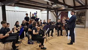 Nakon programa orkestra, u Glazbenom salonu nastupio je trio Društva – Božidar i Božena Černava na bisernici i braču te Lejla Ćatić na klaviru.Publika je glazbeni program nagradila velikim pljeskom, osmijehom i ovacijama. Na kraju koncerta, dr. Peter Neumann osobno se rukovao sa svakim članom orkestra, zahvalio na izvedbi te izrazio želju da ovaj susret bude početak nove suradnje. Istaknuo je i nadu da će se u dogledno vrijeme organizirati koncert našičkog tamburaškog orkestra u Dresdenu – gradu u kojem je i sama Dora Pejačević živjela i stvarala.